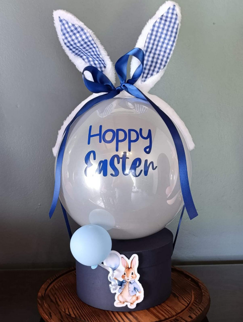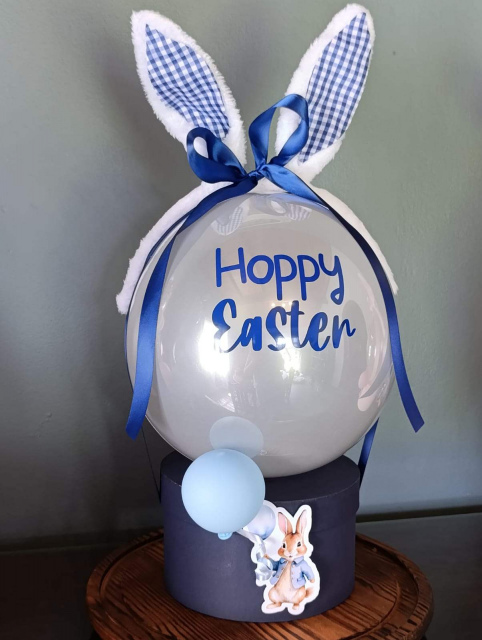 Celebrate Easter with our charming Easter Bunny Balloon Gift Box. Featuring a personalised balloon with adorable bunny ears, satin ribbon detailing, and a premium hat box base, this design makes a beautiful seasonal gift or festive decoration. Perfect for Easter surprises, egg hunts, or thoughtful gifting for little ones and loved ones.