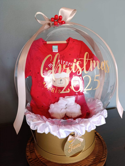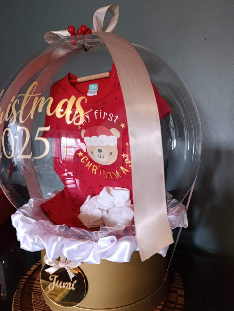 Celebrate a precious milestone with our My First Christmas Outfit Bobo Balloon, beautifully styled with soft white baby booties, a luxurious silk-trim finish, and an elegant bow. Thoughtfully designed to mark baby’s very first festive season, this keepsake balloon gift is perfect for newborn celebrations, Christmas gifting, or festive photoshoots.