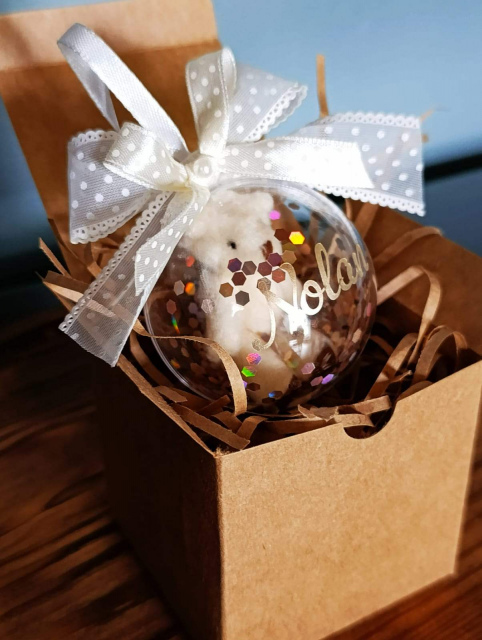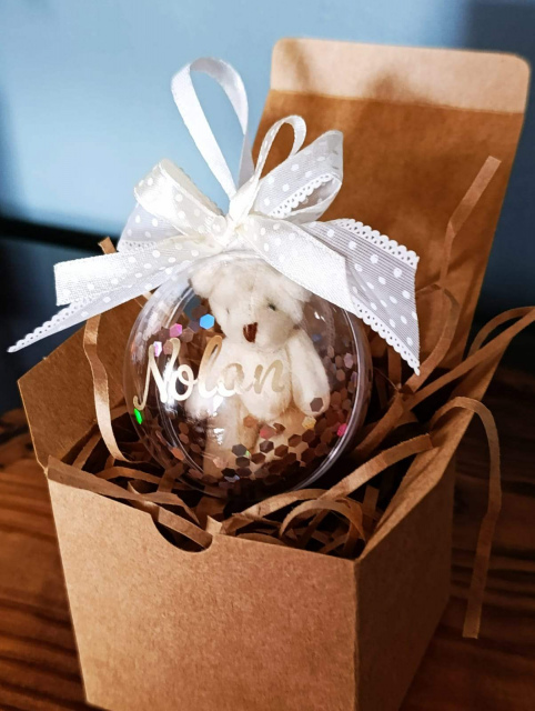 Add a touch of festive charm to your décor with our Personalised Christmas Bauble, beautifully finished with a sweet mini teddy bear, delicate glitter detailing, and an elegant bow. Available in 6 cm or 8 cm sizes, this keepsake bauble makes a thoughtful personalised gift or a special addition to your Christmas tree year after year.